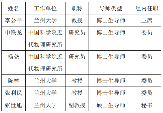 答辩委员会组成: