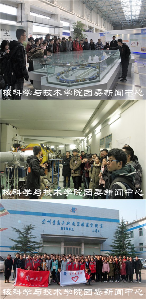 早晨八点半,参观人员在闻欣堂签到后便搭乘校车前往近物所,于九点二十到达。在与受邀高中生会面后,全体人员在近物所正门前合影,并正式开始了近物所的参观之旅。解说员带领同学们参观了重离子加速器等其他一系列高端设施,并讲解了它们的作用。过一系列的讲解,同学们对加速器有了详细的认识。受解说员的引导,同学们又来到了肿瘤治疗介绍资料前,并专心地听讲解说员对重离子射线在医学方面应用的讲解,了解了重离子与x光等射线在肿瘤治疗方面的地特点,认识到了重离子治疗癌症地优越性。参观完后,同学们在近物所门口集合乘坐校车返回榆中校区。