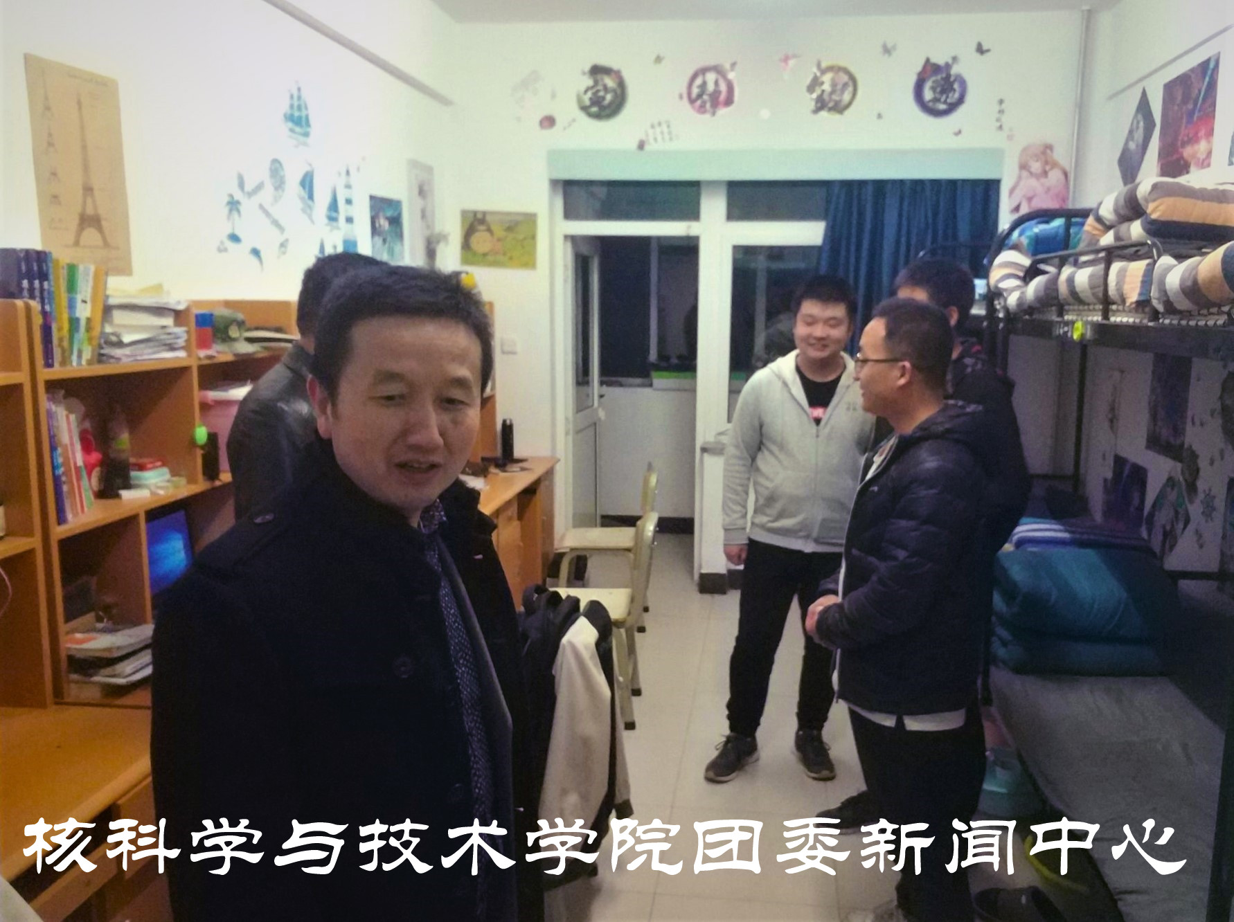 2019年3月21日晚,威尼斯wns8885556中国党委书记杨毅、党委副书记张文定以及辅导员肖连平共同走访了核学院2017级学生宿舍,与学生亲切交谈以了解宿舍情况。