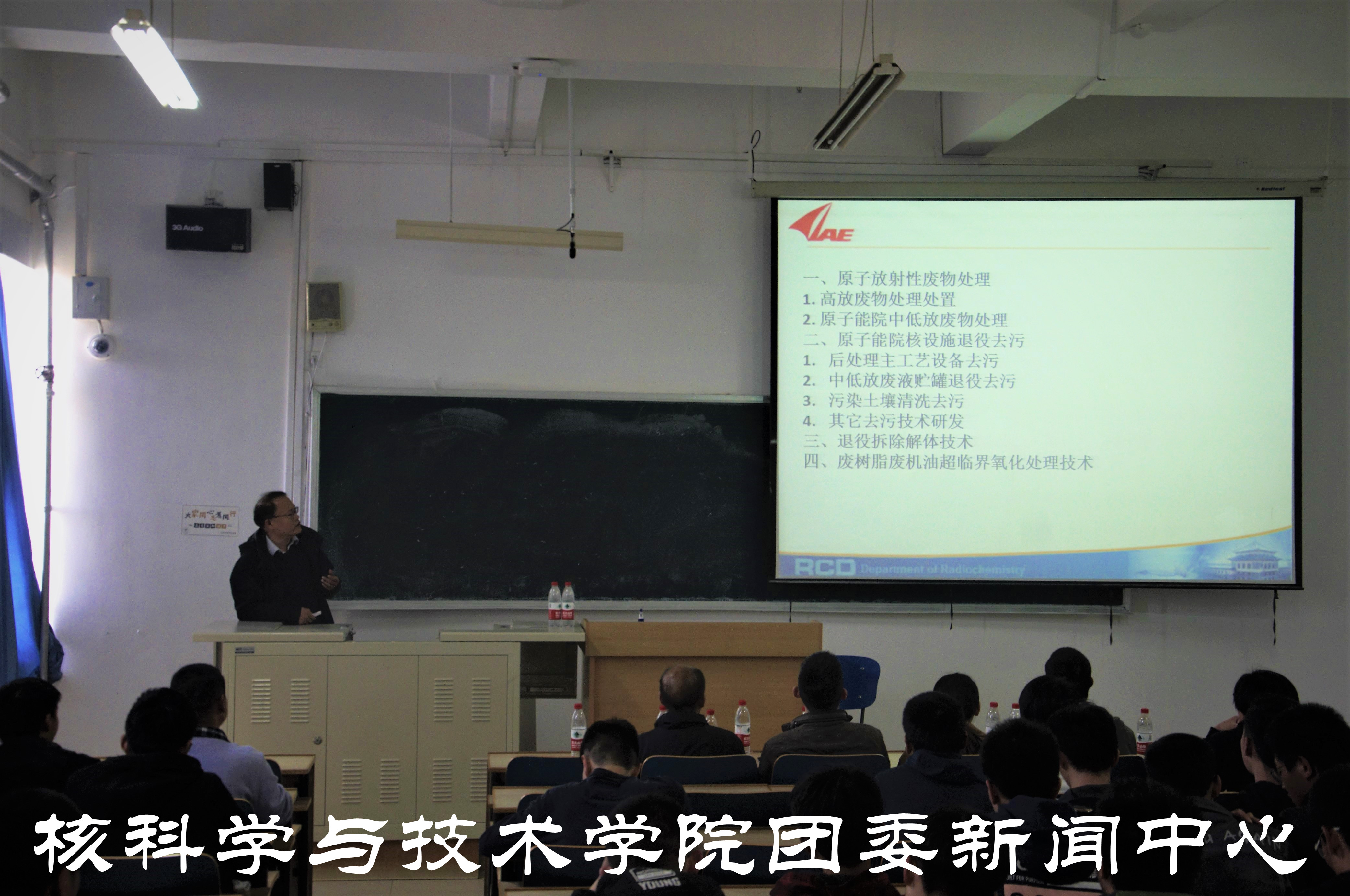 2019年4月10日星期三下午16点整,来自中国原子能科学研究院放射化学研究所的郑佐西研究员于威尼斯wns8885556中国榆中校区天山堂A602教室作了《原子能院放射性废物处理处置和核设施退役去污研究现状》的专题学术报告。