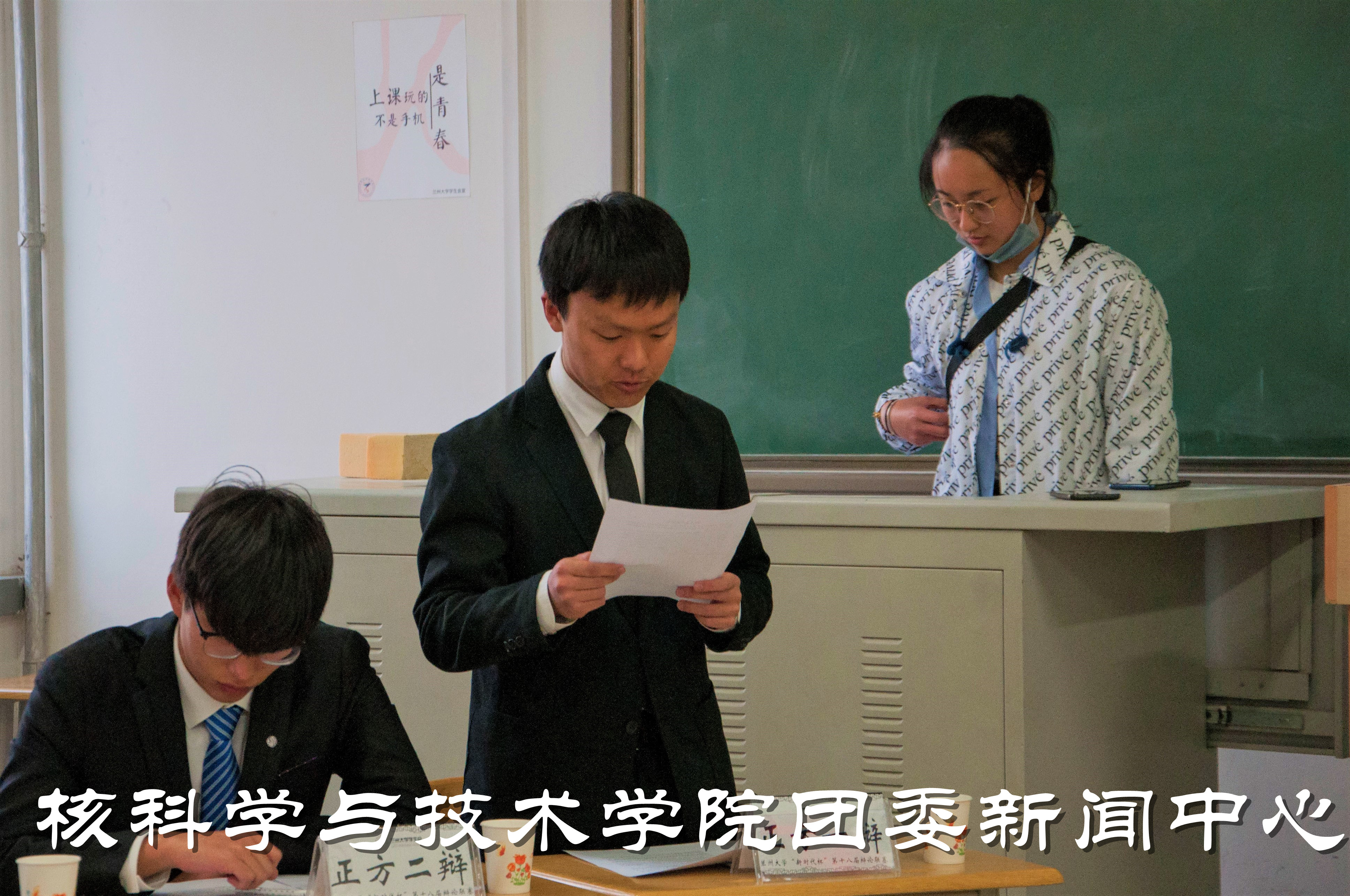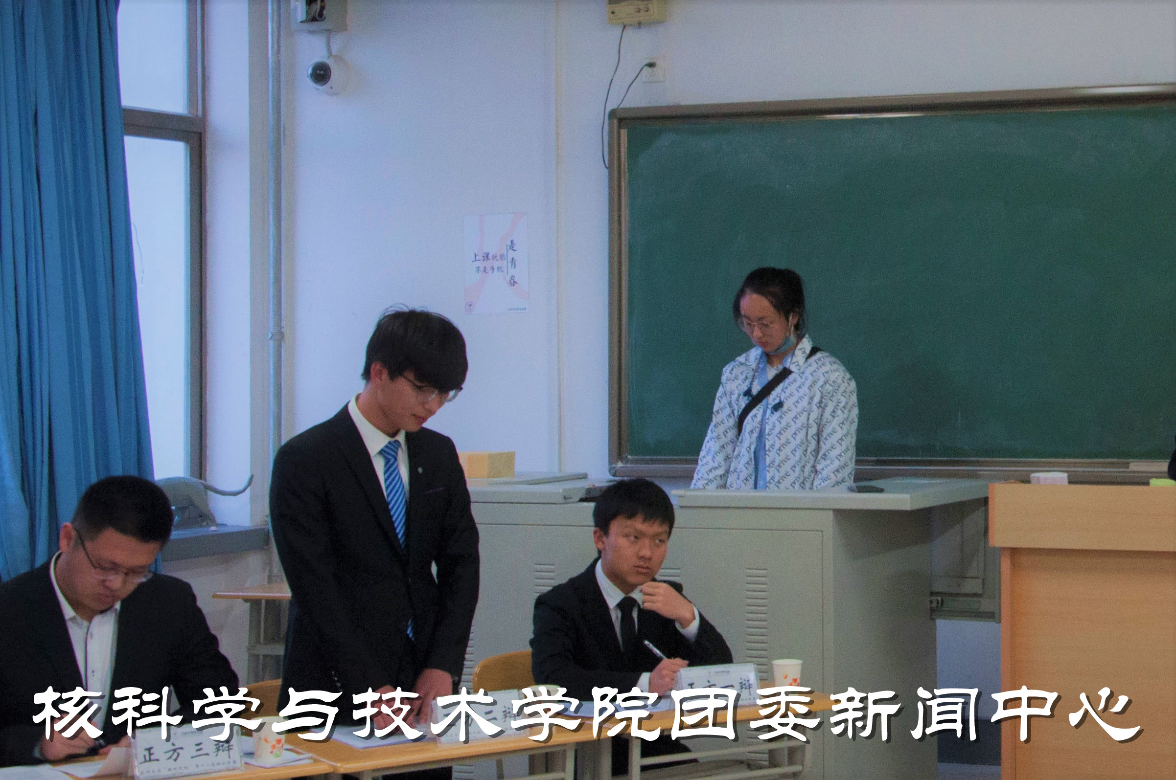 本次比赛由核学院对决文学院,正方核学院一方坚定认为技术是中立的,反方文学院则认为技术不是中立的。经过一番简短而有趣的自我介绍后,比赛进入正题。首先是开篇立论,双方一辩均用严密的语言陈述了己方观点,为整场辩论奠定基础。
