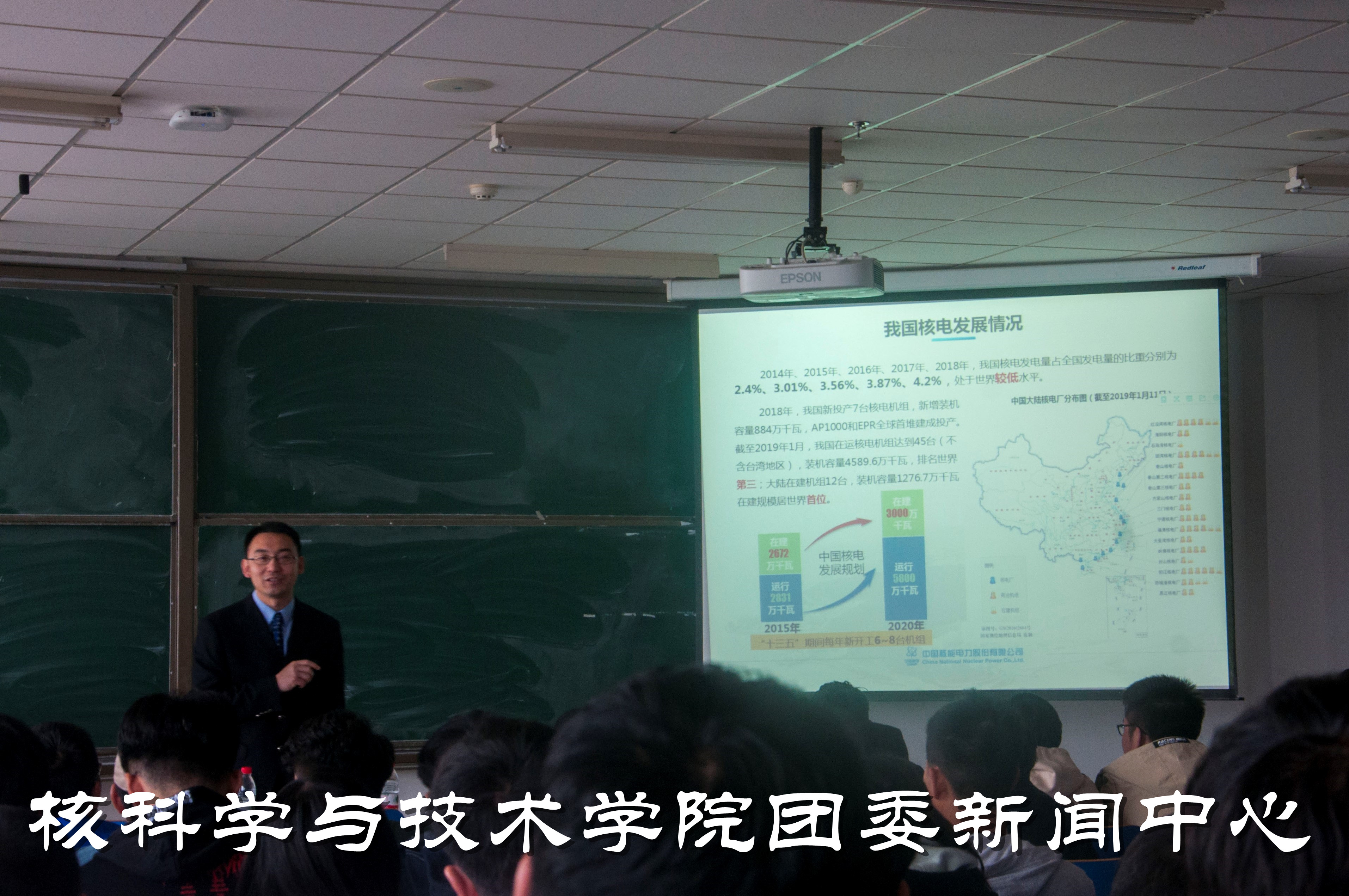 接下来,詹经理对中核集团进行了详细的介绍,包括人员部门组成、科研发展状况、经营状况、社会责任等,并强调指出中核集团乃是中国唯一一家拥有完整核工业体系的企业,在核能发展中起着不可或缺的作用,然后詹经理陈述了核能发展的历史沿革,讲述了钱三强、邓稼先等为核工业发展做出了卓越贡献的人的故事,并鼓励同学们以先辈为标榜,奋发向前。他还谈到如今党和国家对核能发展的强烈支持,并表达了中核集团的求贤若渴之心。