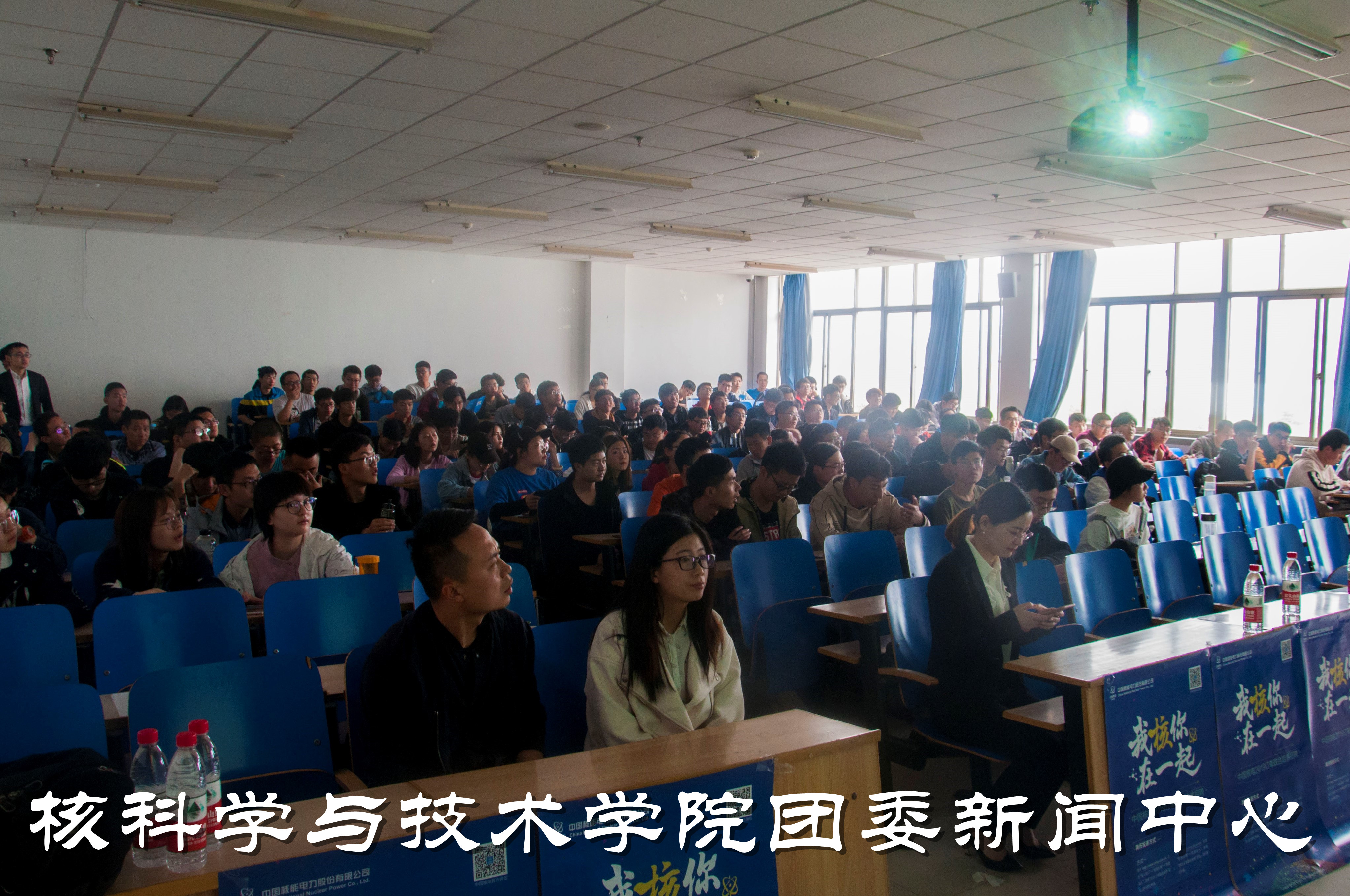 最后詹经理客观描述了全国各地的核电站以及从事核电职业的光明前景,中核员工的职业福利与良好的工作环境。在詹经理的精彩演讲结束之后,秦山核电站的宣讲团人员开展了有奖问答,同学们纷纷积极发言、踊跃回答。在会议的最后秦山核电站的宣讲团人员与同学们进行了互动,为同学们解答了困惑与不解。