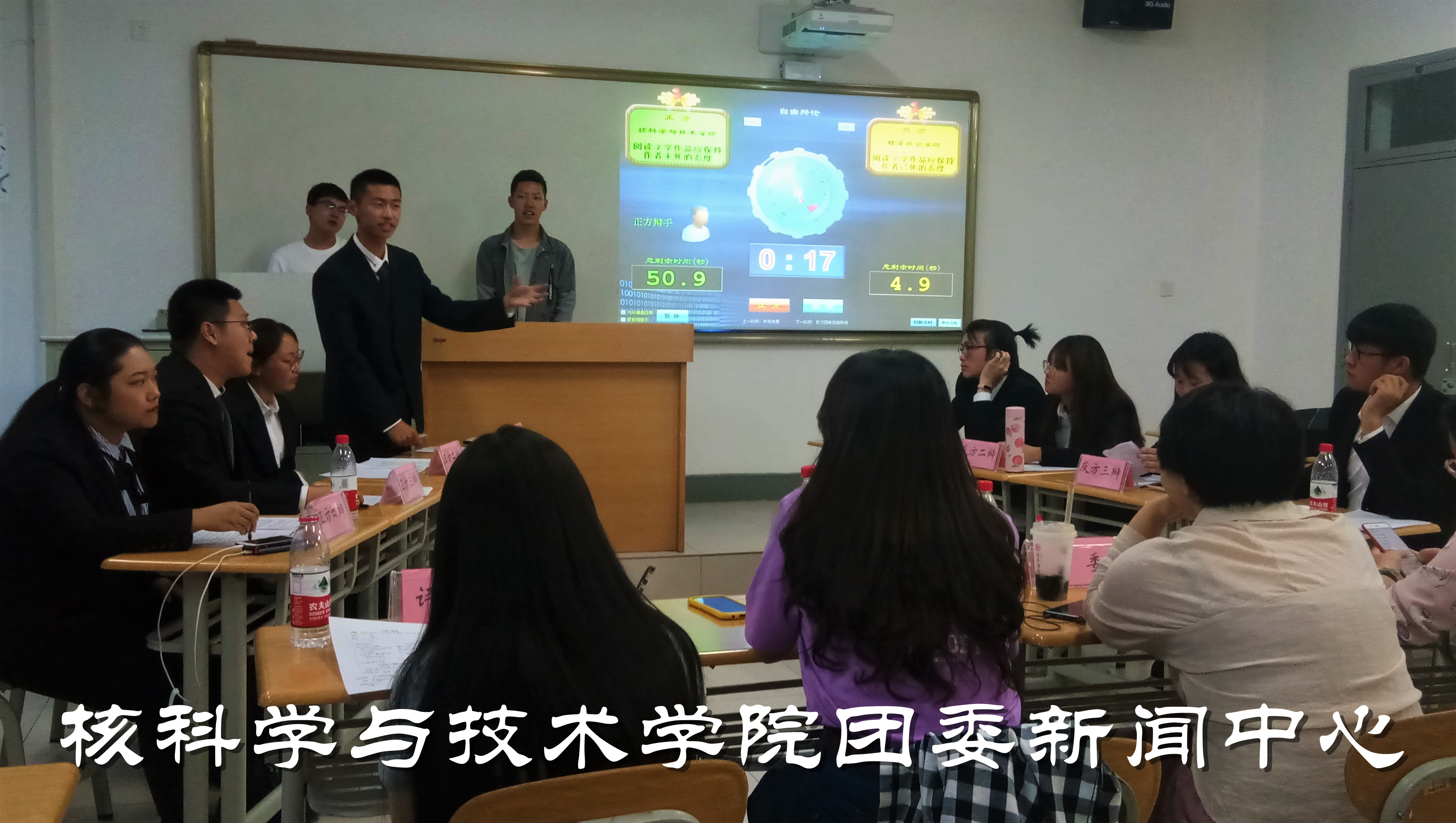 最终核院代表队以其严密的逻辑思维,势不可挡的气势,获得本场比赛的胜利,充分展现出核学院辩论队的能力与风采。而反方四辩叶超群同学获得优秀辩手荣誉。