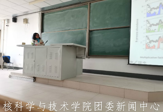 学院为了学生更好的深入学习原子核物理,特意开展这次核物理与天体相联系的讲座。牛一斐教授分别从元素起源和超新星爆发两个方面讲述核物理知识。关于元素起源教授普及了大爆炸核合成理论与恒星核合成理论,重点从H,He,C,O,Si等元素,尤其是铁以后的元素入手讲解,并提到了S,R,P(简称)三个过程。第二个方面教授则从核物质状态方程与电子俘获过程来讲解电子俘获过程指围绕一不稳定原子核的轨道电子可以被原子核捕获。使原子序数为z的原子转变为另一原子,同时放出一个中微子。讲座最后,教授为同学们解答了不懂的疑难问题。